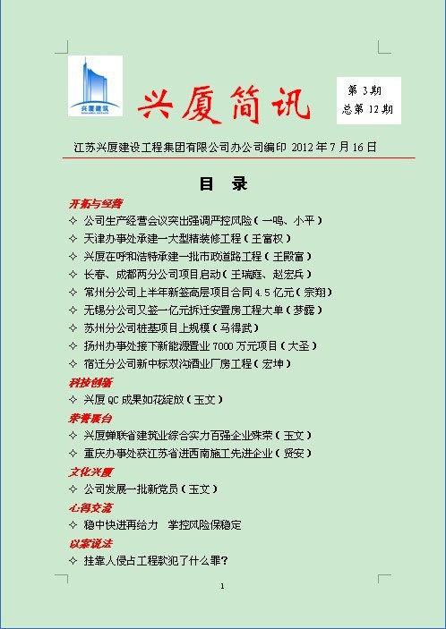 企业文化 兴厦标志 核心理念 兴厦简报 兴厦宣传片 友情链接 -主管部门网站- 住建部 江苏建筑业网 扬州市城乡建设局 中国高邮政府门户网站 -行业协会网站- 中国建筑业协会 中国施工企业管理协会 中国工程建设网 -学习服务类网站- 建设工程教育网 人人网 携程旅行网 中国建筑安全网 中国建设科技网 -搜索类网站- 百度 360网址导航 -业内同行网站- 中国广厦 南通四建 江苏华建 江苏扬建