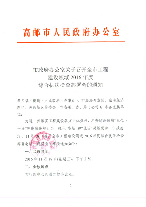 通知公告 您现在的位置:MILAN.COM - 米兰(中国) - 通知公告 市政府办公室关于召开全市工程建设领域2016年度综合执法 检查部署会的通知 时间: 2016-11-18 上一篇: 关于扩大小规模纳税人自行开具增值税专用发票试点范围等事项的公告 下一篇: 关于召开扬州市建安企业科学发展经验交流会的通知 < 返回